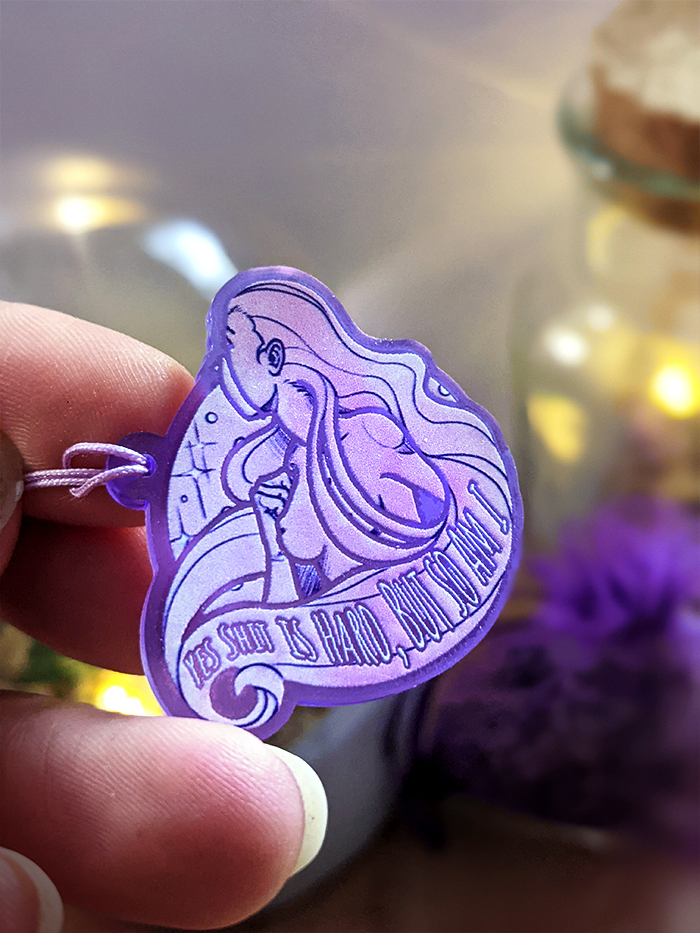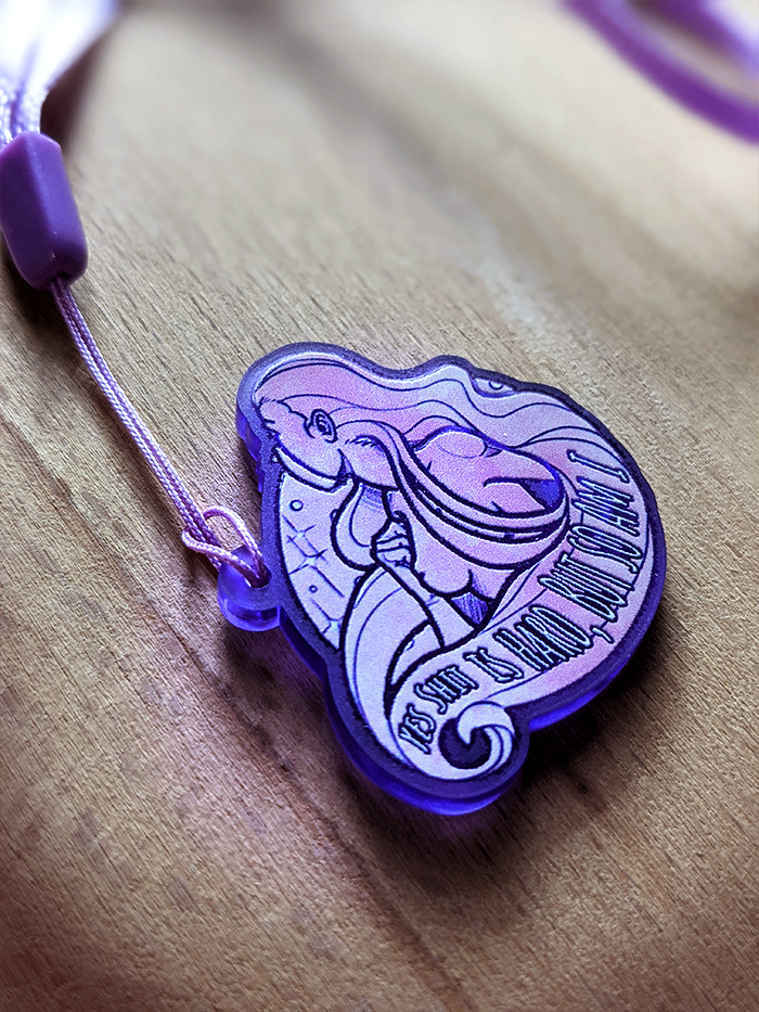 You get one of these limited Edition Mental Health Charms with about 3,5 cm length and a see throw purple finish.