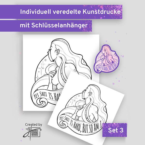 It comes together with an art print in 21x21 cm and an additional 15x15 cm print with a serial number, signature and special customisation, that will make your print an unique piece of art, with bronze, gold, purple or silver colours.